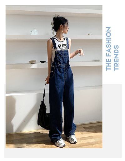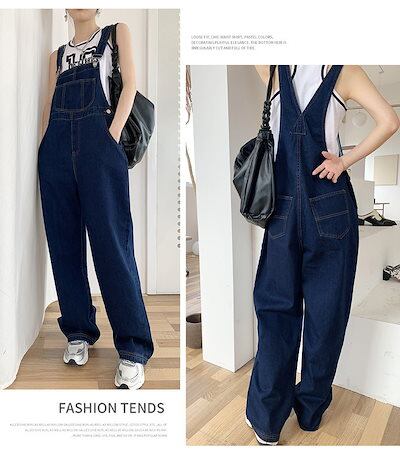 レディース デニム ストラップ ワイドパンツ オールインワンパンツ サスペンダーパンツ デニムパンツ ストレート ロングパンツ デニムジーンズ