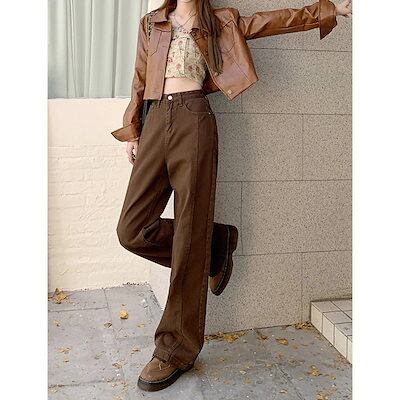デニムパンツ レトロ ジーンズ レディース ハイウエスト ゆったり ストレート ワイドパンツ 秋 かっこいい!スラックスパンツ コーデュロイパンツ
