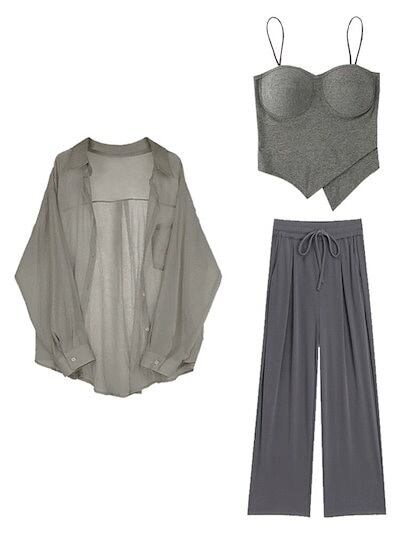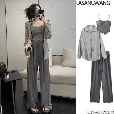 【本日限定】キャミソール インナー カップ付きインナー カジュアルファッションウェア 体型カバー スリム 胸パッド キャミソール カーディガンサンブレーカーワイドパンツレディース3点セット
