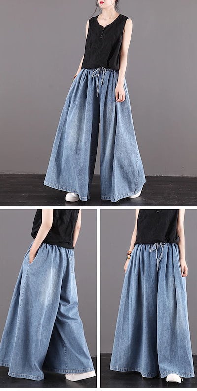 マキシスカート【送 料 無 料】高 品 質 レディース ズボン ウォッシュ加工 ジーンズ ワイドパンツ レトロ ゆったり 大きいサイズ ウエストゴム タイパンツ ひんやりボトムス
