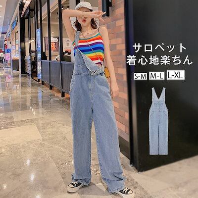 サロペット パンツ オールインワン ワイドパンツ デニムパンツ レディース オーバーオール春 夏 ロング丈 ハイウエスト 大きいサイズ カジュアル 体型カバー ゆったり リラックス 快適 通勤 きれい