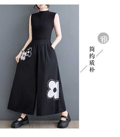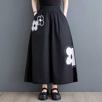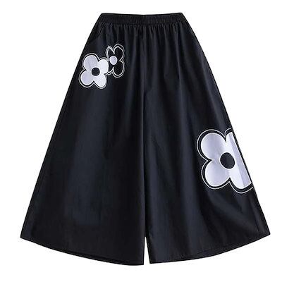「ファットガール」 キュロットスカート 花柄 九分丈 ワイドパンツ ゴム 体型カバー 大きいサイズ ゆったり レディース