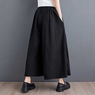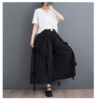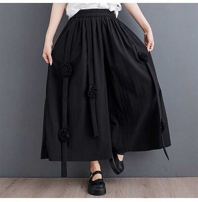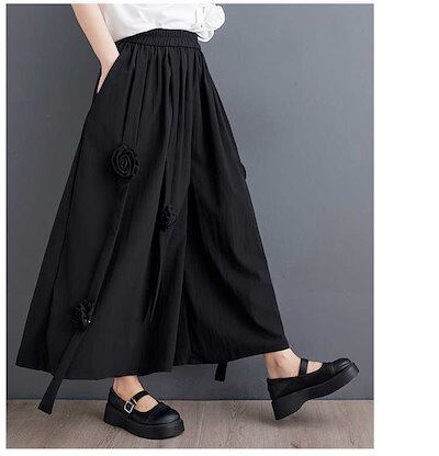 「ファットガール」 2024夏 キュロットスカート ワイドパンツ 花飾り ゴム 体型カバー 大きいサイズ ゆったり レディース