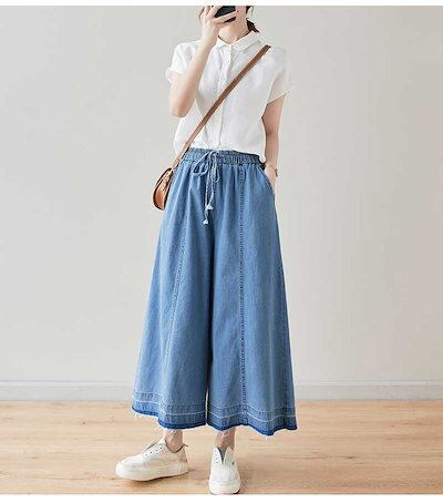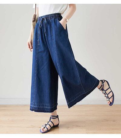 「ファットガール」 夏 フレアパンツ デニム キュロットスカート ワイドパンツ 体型カバー 大きいサイズ ゆったり レディース