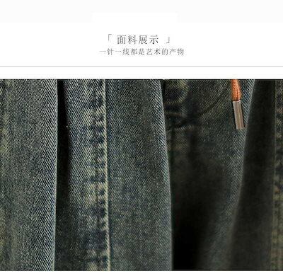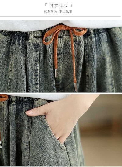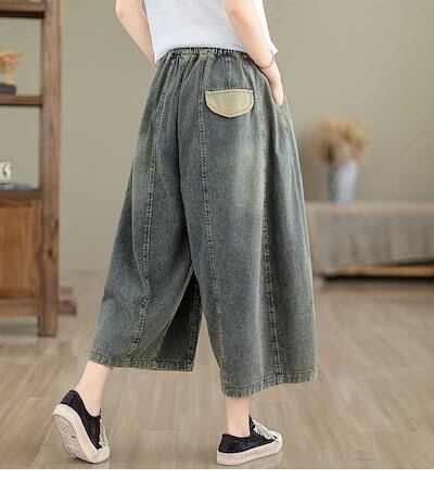 「ファットガール」 八分丈 デニムパンツ 刺繍 ワイドパンツ ゴム 体型カバー 大きいサイズ ゆったり レディース