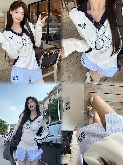 2024秋 長袖 Tシャツ ショート丈 カットソー トップス カジュアル 配色 韓国系ストリート ロゴ へそ出し タイトネックスリーブ 肌見せ T ファッションレディース かわいい風冬トップス