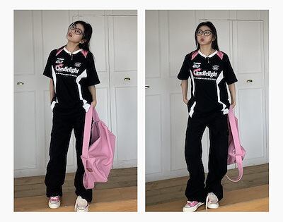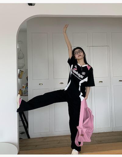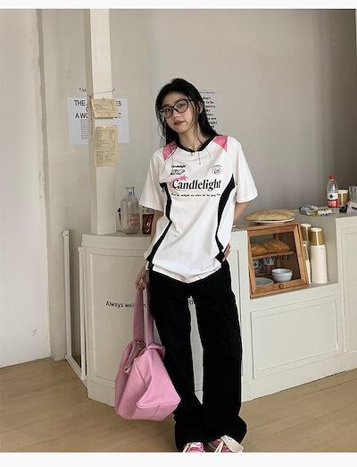 2024夏 韓国可愛い風トップス Tシャツ ファッション 半袖 スリムフィット サイド ペイントシルエット ゆったり丈 休日レディースサイズ韓国Vネック おしゃれ カジュアル メンズライク T