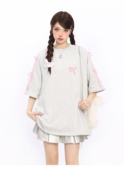 2024夏 韓国可愛い風トップス Tシャツ ファッション系 半袖 スリムフィット サイド ペイントシルエット ゆったり丈 ロングレディースサイズ韓国Vネックおしゃれカジュアルメンズライク T