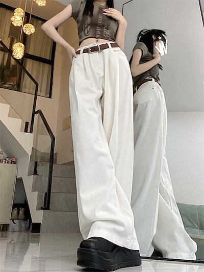 2024 パンツ ロング丈 ハイウエスト 美脚効果 脚長効果 細見え 白 おしゃれ かわいい 甘め 韓国系ファッション レディース お出かけ 秋冬