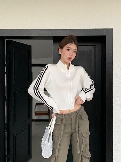 2024 秋 韓国 かわいい ニットネック レディース アウター ブルゾン お出かけ ブラック ライトカーキ アウター長袖セクシートップスサイド冬カジュアルファッション系お出かけフル丈