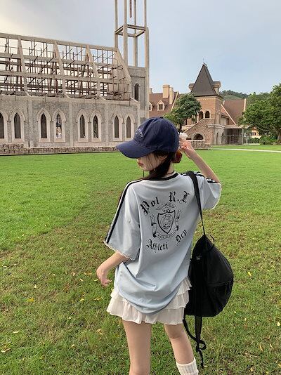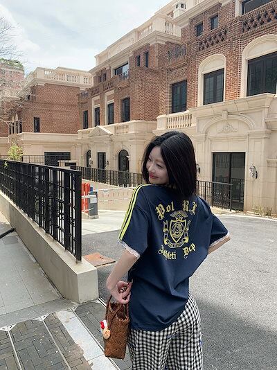 2024夏 韓国可愛い風トップス Tシャツ ファッション 半袖 スリムフィット ロングサイド ペイントシルエット ゆったり丈 休日レディースサイズ韓国Vネック おしゃれ カジュアル メンズライク T