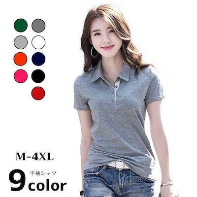 ポロシャツレディース半袖トップス春夏tシャツスリット大きいサイズカジュアル無地シンプルおしゃれ涼しい
