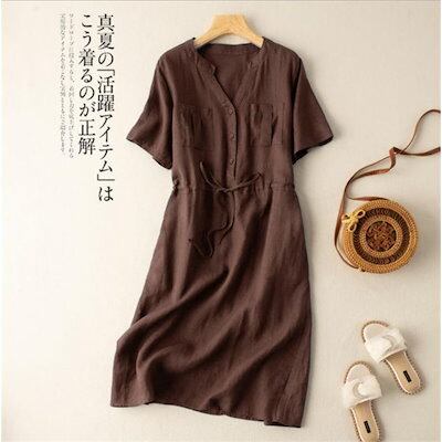 ワンピース チュニック 綿麻ワンピース レディース 半袖 冷房対策 夏 春 トップス ロングワンピ ゆったり 綿 リネン 大きいサイズ 着心地 カジュアル