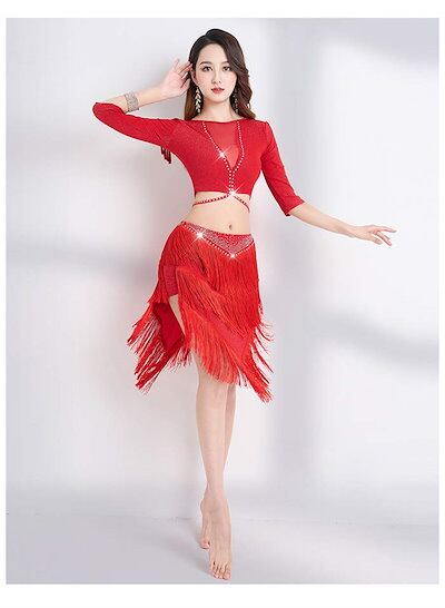 レッスン着 ベリーダンス レッスンウェア 社交ダンス 練習着 スカート ダンス 5分袖 コスチューム ヒップスカーフ 発表会 衣装 セット 大人 上下セット トップス ステージ衣装 レディース セット