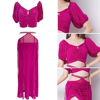 ヒップスカープ 衣装 コスチューム 大人 レッスン着 余興 セットアップ 練習着 レディース ステージ衣装 ラメベリーダンス衣装 セット 社交ダンス 半袖トップス 舞台衣装 レッスンウェア ラメ入り