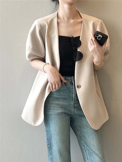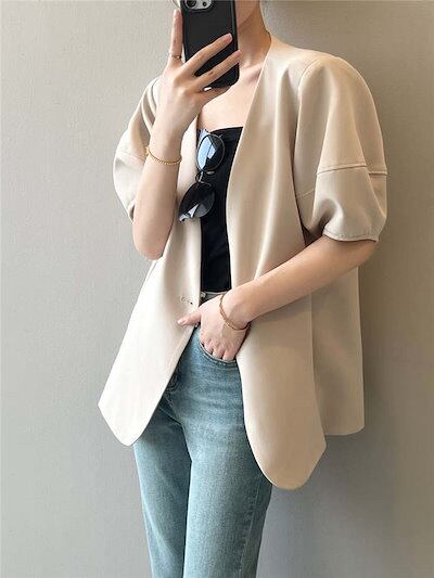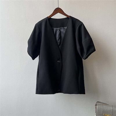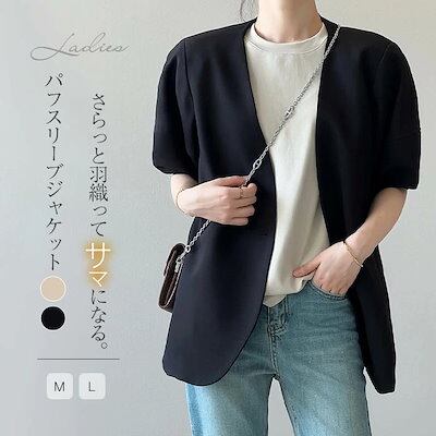 テーラードジャケット 春 夏 レディース テーラード 半袖 パフスリーブ 半袖ジャケット 羽織り はおり 上着 ノーカラー トップス おしゃれ ファッション 楽ちん 上品 きれいめ スッキリ カジュア