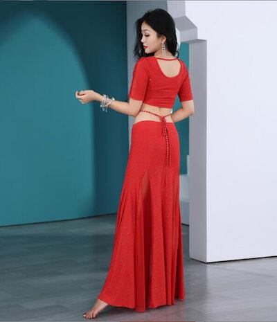 半袖ダンス衣裳 ベリーダンス衣装 レディース セットアップ 大人用ダンス衣装 トップス+スカート エレガント トップスレッスン着 競技着 セクシー シースールジュニア おしゃれダンス衣装 ダンス教室