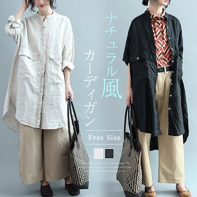カーディガン レディース ロングカーディガン 綿麻風 カーディガン 夏 秋 半袖 チュニック 大人可愛い 大きいサイズ ゆったり 体型カバー 無地 綿麻風カーディガン ナチュラル風 春夏 おしゃれ き