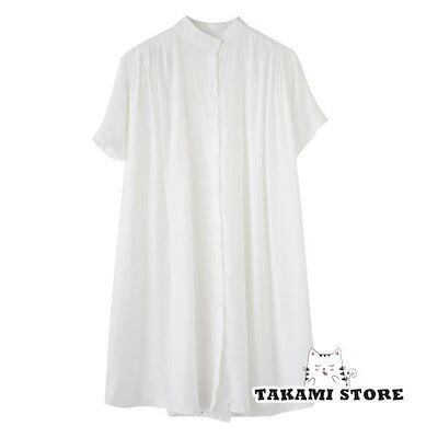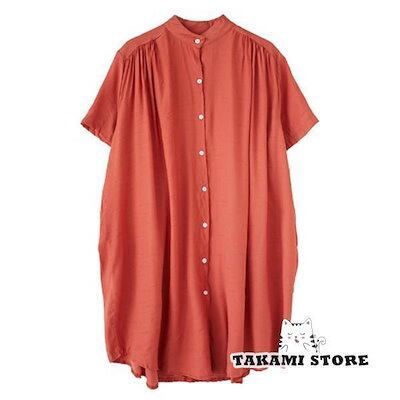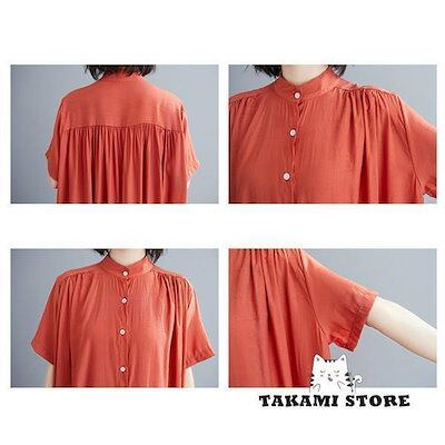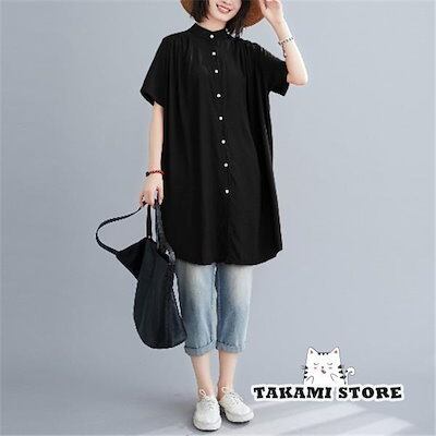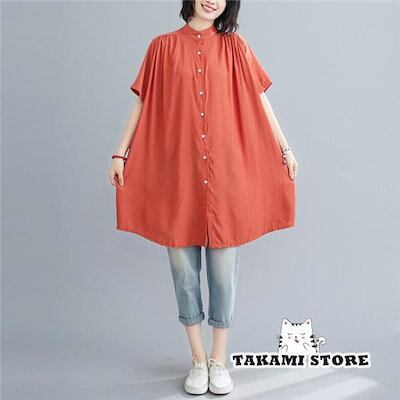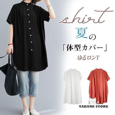 超人気 シャツ ロングシャツ レディース トップス ロング ブラウス 夏 立襟 半袖 無地 チュニック ゆったり 体型カバー 大きいサイズ 夏 通勤 40代