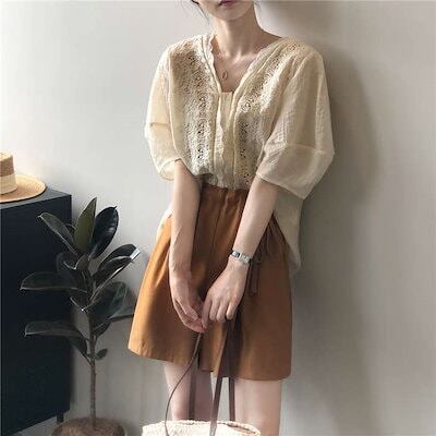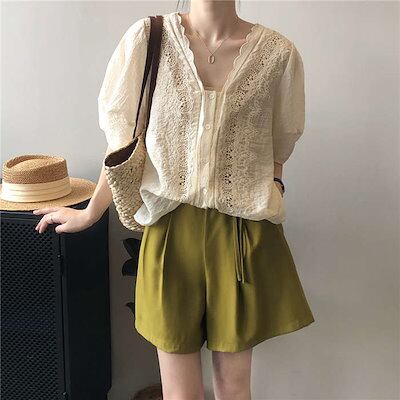 レースブラウス 半袖 フォーマル 大きいサイズ 刺繍レースブラウス レディース 夏 Vネック フリル 透かし編み パフスリーブ オフィス ゆったり オシャレ 上品 可愛い 大人 30代 50代 送料無