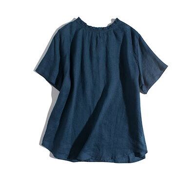 リネンシャツ 半袖 レディース 麻100% リネン100% ブラウス 前後2way 夏 無地 立ち襟 フリル襟 涼しい シンプル 5色 ボダンシャツ 上品 春夏 春 夏 通勤 ベーシック 大人可愛い