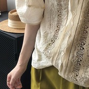 ブラウス レディース 40代 春夏 半袖 きれいめ レース刺繍 オシャレ レースシャツ 半袖 パフスリーブ 上品 大人 通勤OL ゆったり 30代 50代