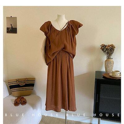 スカート セットアップ レディース ブラウス 半袖 tシャツ ロングスカート ゆったり 上下セット おしゃれ カジュアル 大きいサイズ 2点セット 体型カバー