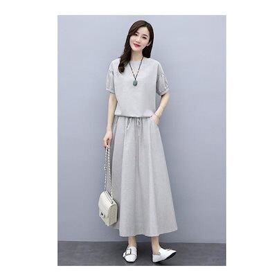 セットアップ レディース 40代 春夏 半袖トップス ロングスカート セットアップ 綿麻 2点セット カジュアル オシャレ 韓国風 着痩せ 大人 新作