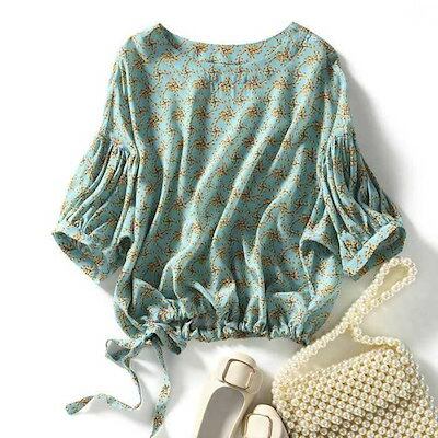 Tシャツ ブラウス トップス チュニック 夏ブラウス 花柄 体型カバー レディース シフォン 五分袖 半袖 おしゃれ 通勤 ゆったり