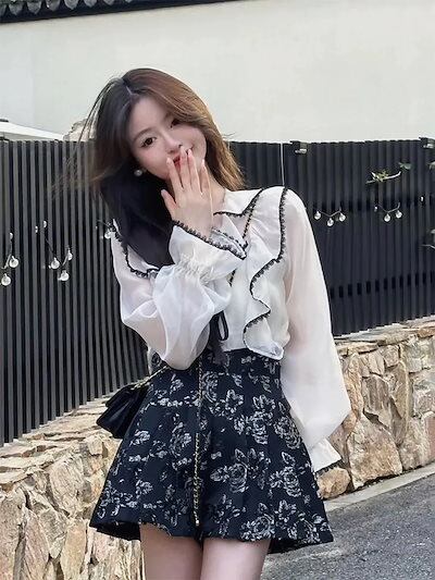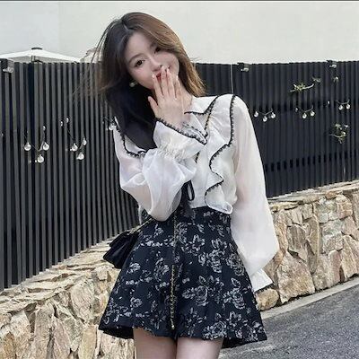 セットアップ レディース 夏 フレンチ高級感スーツ春夏の新気品フリルVネックトップスハイウエストパンツ2点セット