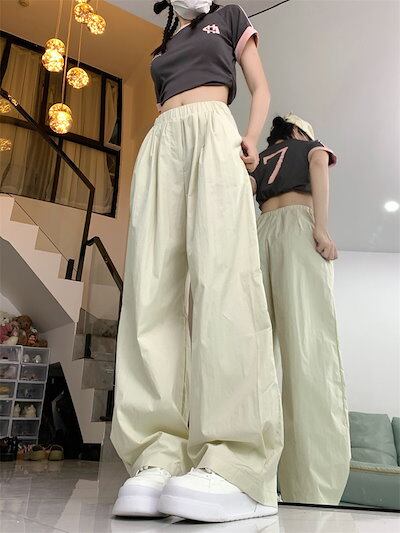 2024春夏パンツ ロング丈 ワイド ストレート ウエストゴム ハイウエスト 美脚効果 脚長効果 細見え 夏 白 黒 青 韓国ファッション レディース かわいい おしゃれ カジュアル お出かけ