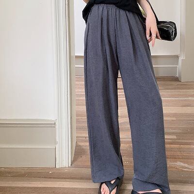 【3日以内出荷】ワイドパンツ 美脚 2024春夏新作 ハイウエストドレープ感スリムカジュアルロングパンツ 薄手 ゆったりストレートパンツ レディース 韓国