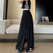 【3日以内出荷】ワイドパンツ 美脚 高級感 2024春夏 薄手 カジュアルスカートハイウエストゆったり垂下感モップロングパンツ レディース 韓国