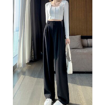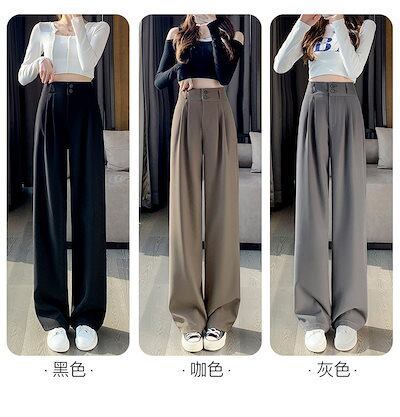 ワイドレッグスーツパンツ レディース 2024新作 ブラウン ハイウエスト 着痩せ ゆったり ゆったり ドレープ カジュアルパンツ 小柄な人向け