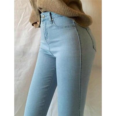 体型カバーに効く韓国ファッション ハイウエスト デニム スリム 百掛け スキニーパンツ 美腿 ジーンズ 個性