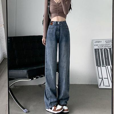 春服 レディース 高級感 スリム 修身 ハイウエストデニム ストレートパンツ レディース 着痩 ズボン レディース