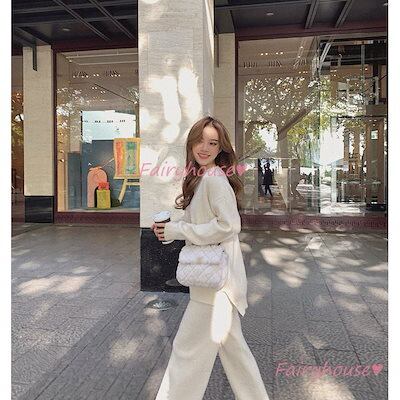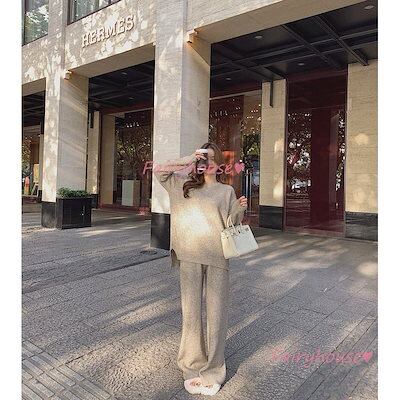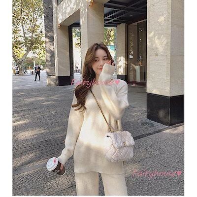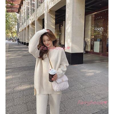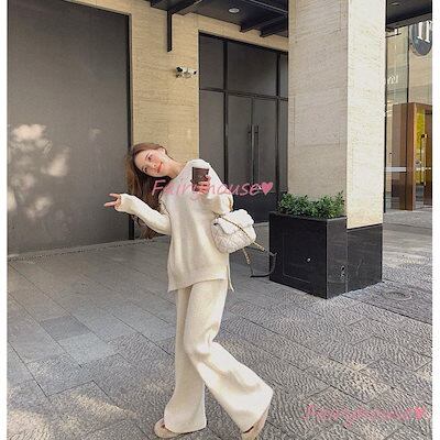 ニットセットアップ レディース 40代 秋冬 長袖 ニットセーター 無地 ワイドパンツ ニットセットアップ オシャレ韓国風 大人着痩せ カジュアル 通勤 50代 30代