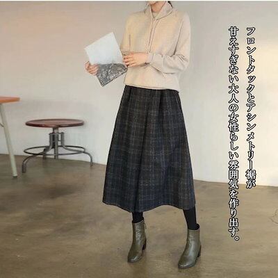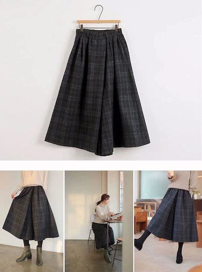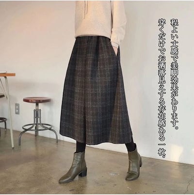 ガウチョパンツ ワイドパンツ レディース 秋冬 パンツ チェック ラシャ ウエストゴム ポケット スカーチョ チェックパンツ 九分丈 ワイド ゆったり ボトムス ズボン 体型カバー ラシャパンツ 厚手