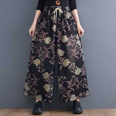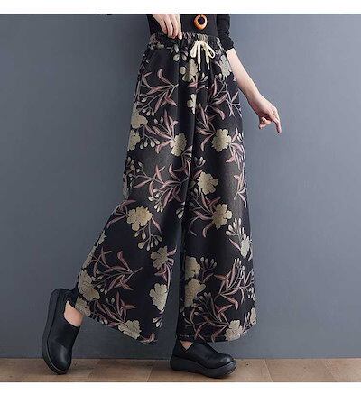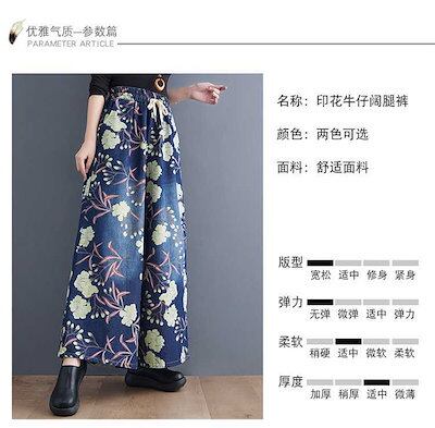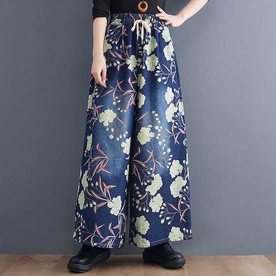 「ファットガール」 2024秋冬新品 デニム ワイドパンツ 花柄 大きいサイズ 体型カバー レディース ロングパンツ メガ割