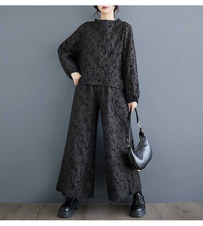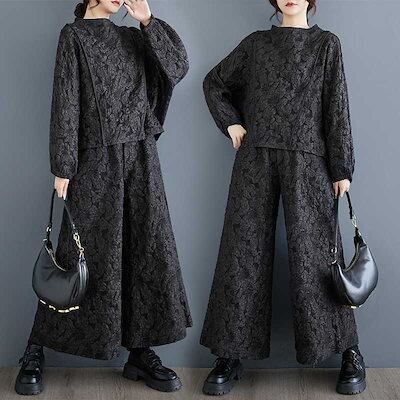 「ファットガール」 2024秋新品 上下セット ジャカード ブラウス ワイドパンツ 大きいサイズ 体型カバー レトロ 中華風 レディース チャイナ セットアップ メガ割