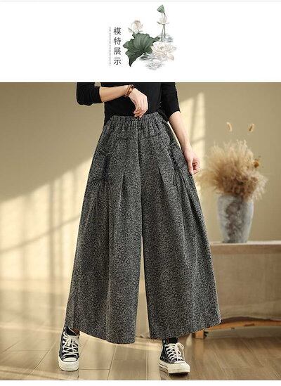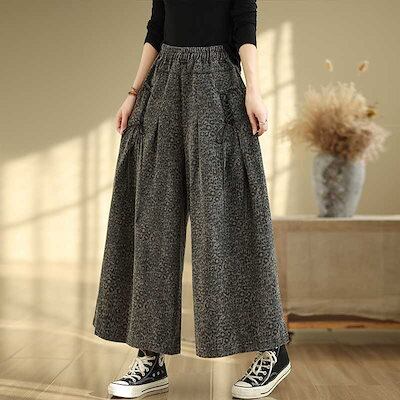 「ファットガール」 2024秋新品 デニム 豹柄 ワイドパンツ ゴム 大きいサイズ 体型カバー レディース ロングパンツ フレア メガ割