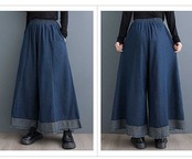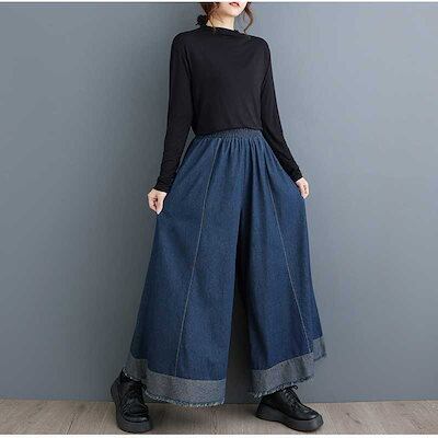 「ファットガール」 2024秋新品 デニムワイドパンツ キュロットスカート 大きいサイズ 体型カバー レディース ゴム ジーンズ メガ割