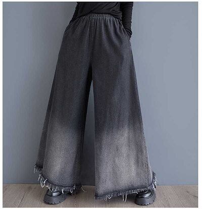 「ファットガール」 2024秋新品 デニム ワイドパンツ 大きいサイズ 体型カバー レディース フレア ゴム グラデーション ジーンズ ロングパンツ メガ割