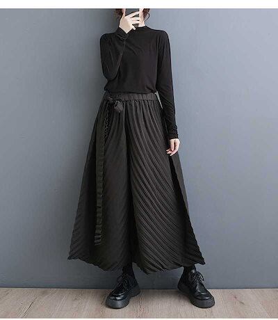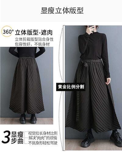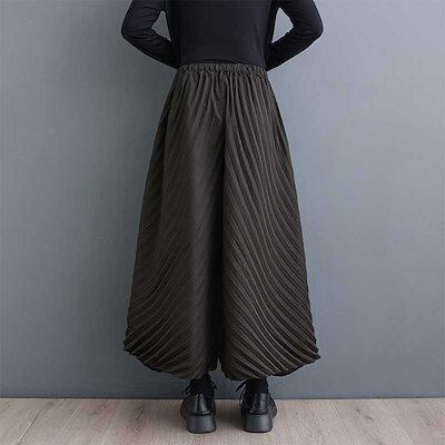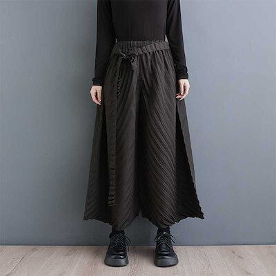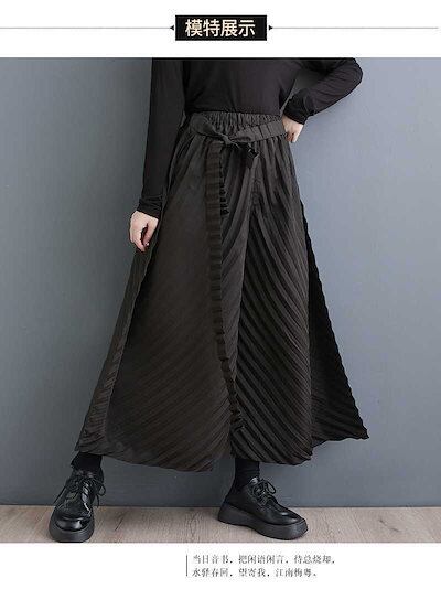 「ファットガール」 2024春新品 キュロットスカート ワイドパンツ 皺デザイン ゴムウエスト 大きいサイズ 体型カバー レディース ロングパンツ