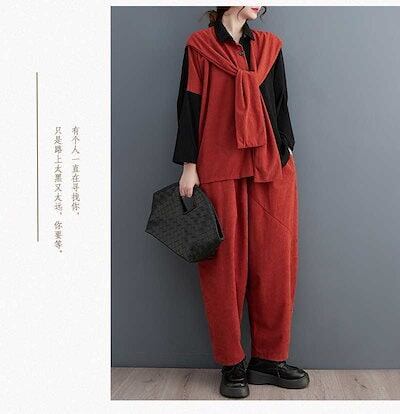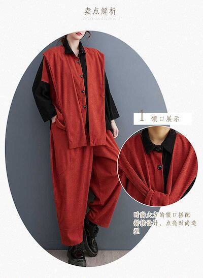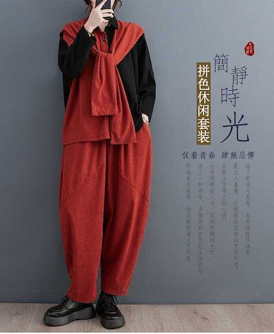 「ファットガール」 秋 上下セット 飾りストール ドッキング トレーナー ワイドパンツ レディース セットアップ