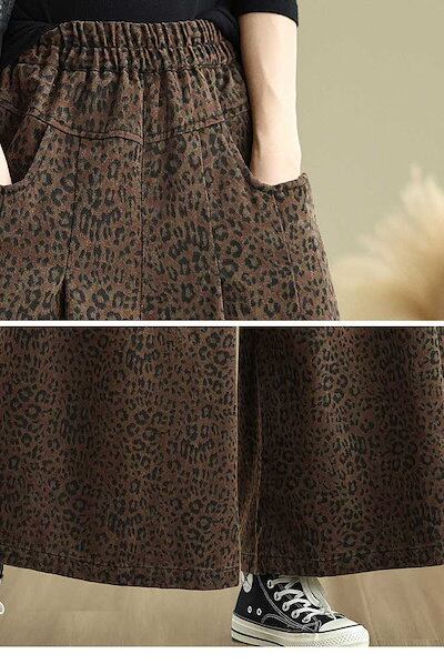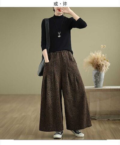 「ファットガール」 2024秋新品 豹柄 ワイドパンツ フレアー 大きいサイズ 体型カバー レディース ゴム ストレート ロングパンツ メガ割