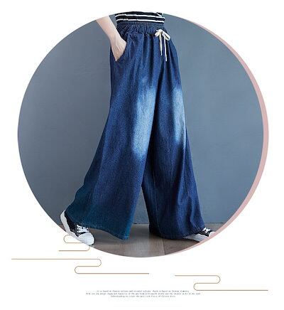 「ファットガール」 秋冬 デニムパンツ ゴム ワイドパンツ ハイウエスト 大きいサイズ ゆったり フレア レディース ロングパンツ