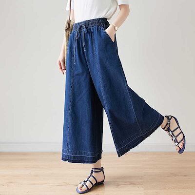 「ファットガール」 夏 フレアパンツ デニム キュロットスカート ワイドパンツ 体型カバー 大きいサイズ ゆったり レディース