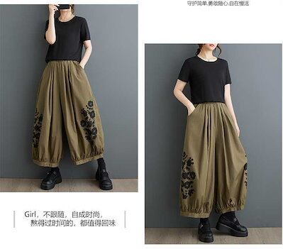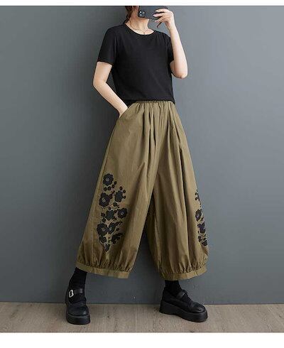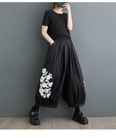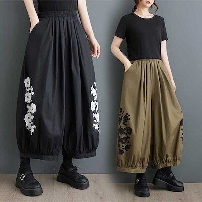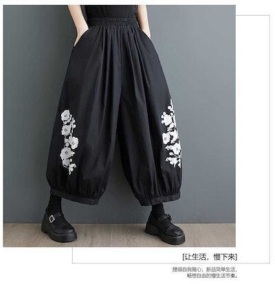 「ファットガール」 2024夏新品 九分丈 ワイドパンツ 花柄 大きいサイズ 体型カバー レディース ゴム ストレート ロングパンツ メガ割