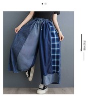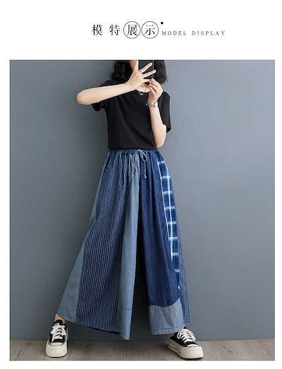 「ファットガール」 2024夏新品 レトロ デニム ドッキング ワイドパンツ フレア 大きいサイズ 巾着 ゴム 体型カバー レディース キュロットスカート ロングパンツ メガ割